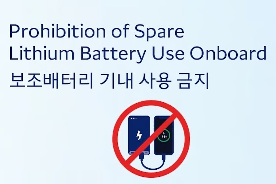 Five airlines under Hanjin Group, including Korean Air Lines, said on the 23rd they will impose a blanket ban on the use of portable batteries on board. The revised portable battery policy will take effect on the 26th on domestic and international flights operated by Korean Air Lines, Asiana Airlines, Jin Air, AIR BUSAN, and AIR SEOUL. Accordingly, charging electronic devices such as mobile phones, tablet PCs, laptops, and cameras with portable batteries carried on board is prohibited.
